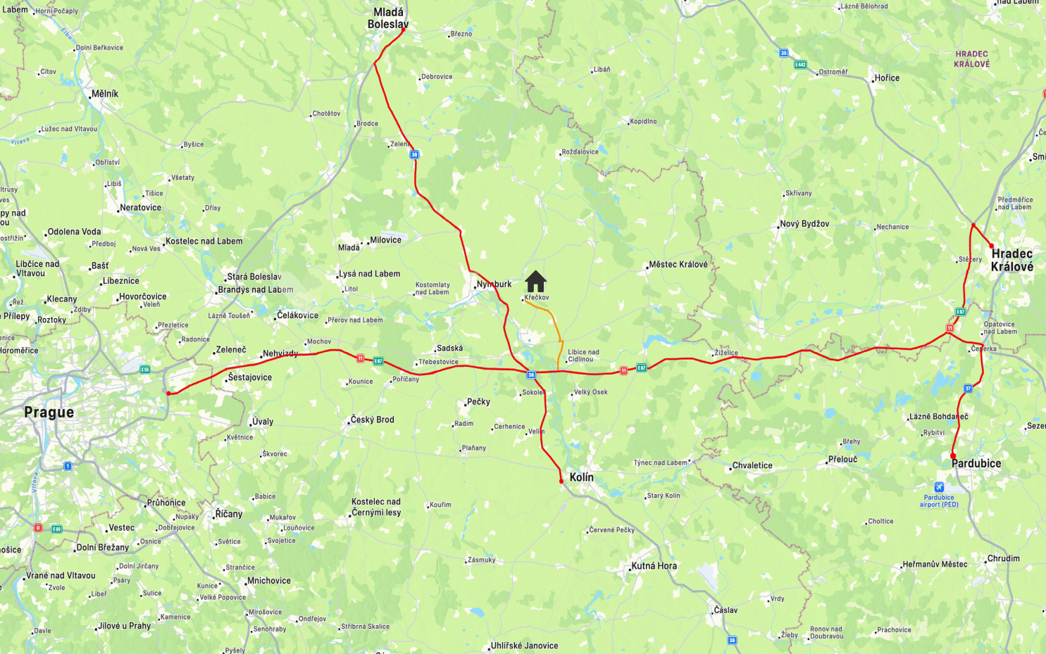 65km Pardubice.